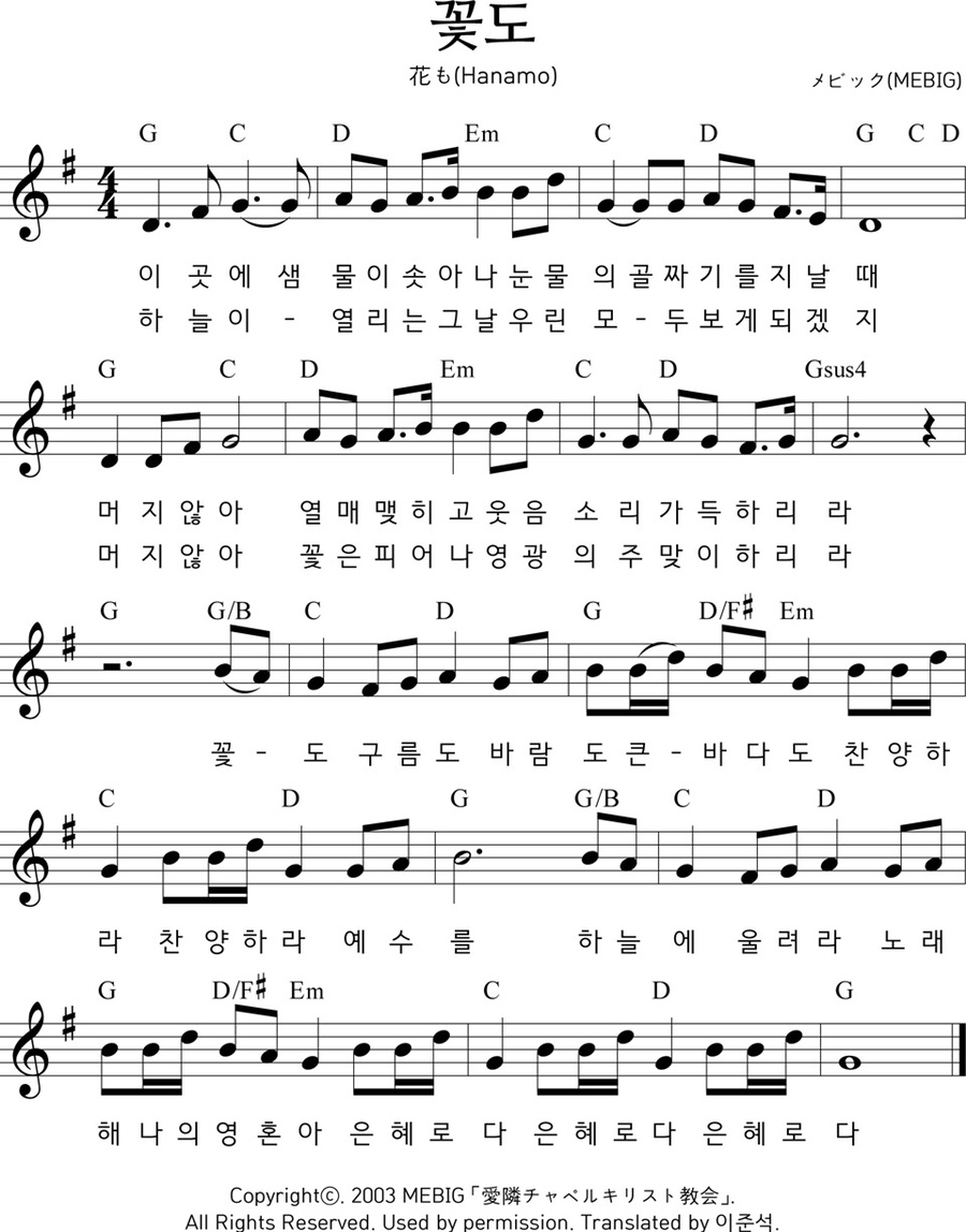 자, 서론이 너무 길었네요. 결론은 '꽃들도' 이 찬양은 일본 삿포로에서 사역하시는 쯔요시 목사님께서 지으신 곡입니다.